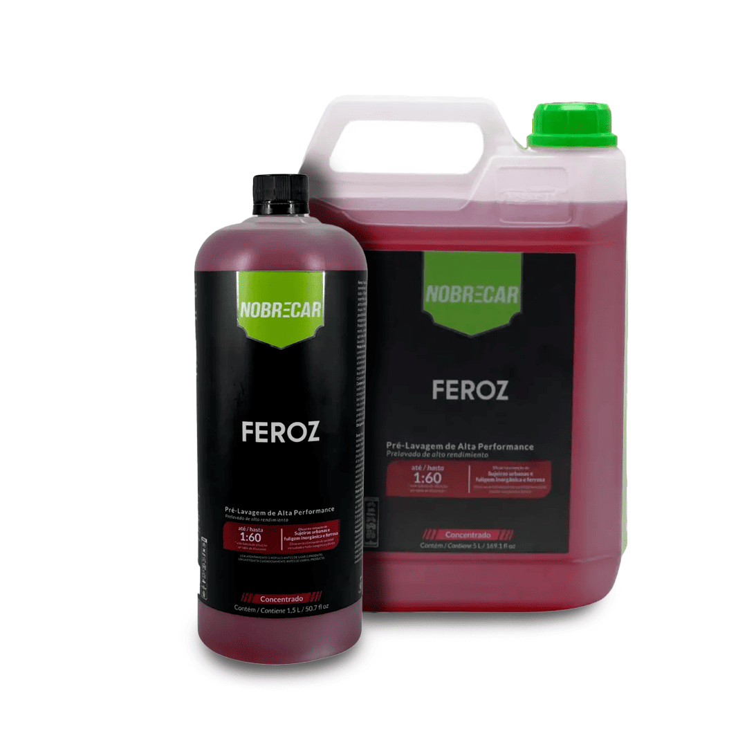 O Feroz é a revolução na pré-lavagem automotiva, combinando tensoativos de alta eficácia com ação desengraxante e desengordurante. Este produto é capaz de remover fuligem inorgânica, sujeiras ferrosas e incrustações difíceis, facilitando o processo de limpeza sem atrito, prevenindo arranhões e tornando a lavação sem toque uma realidade.