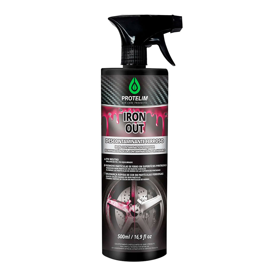 No detalhamento de alta performance, a contaminação ferrosa é um ativo corrosivo que oxida silenciosamente sobre a superfície. O <strong>Iron Out da Protelim</strong> é o mecanismo tático desenvolvido para remover quimicamente partículas de ferro incrustadas em rodas e na pintura automotiva. Sua fórmula purificada possui pH equilibrado e um <strong>indicador visual</strong> de última geração que altera a cor para roxo intenso ao reagir com o ferro. Na <strong>Loja Rafael Senzi</strong>, o Iron Out de 500ml é a ferramenta de elite para purificar superfícies antes do polimento ou vitrificação, garantindo uma base livre de contaminação metálica.