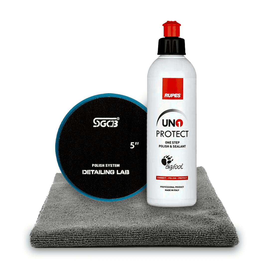 Otimize o seu tempo e eleve o nível do acabamento em seu veículo com este Kit otimizado, cuidadosamente selecionado para profissionais e entusiastas do detalhamento automotivo. Combinando a precisão da Boina SGCB, a absorção da Toalha de Microfibra SGCB e a inovação do composto 3 em 1 UNO PROTECT da RUPES, você garante brilho intenso, correção de imperfeições leves e proteção duradoura em uma única etapa.