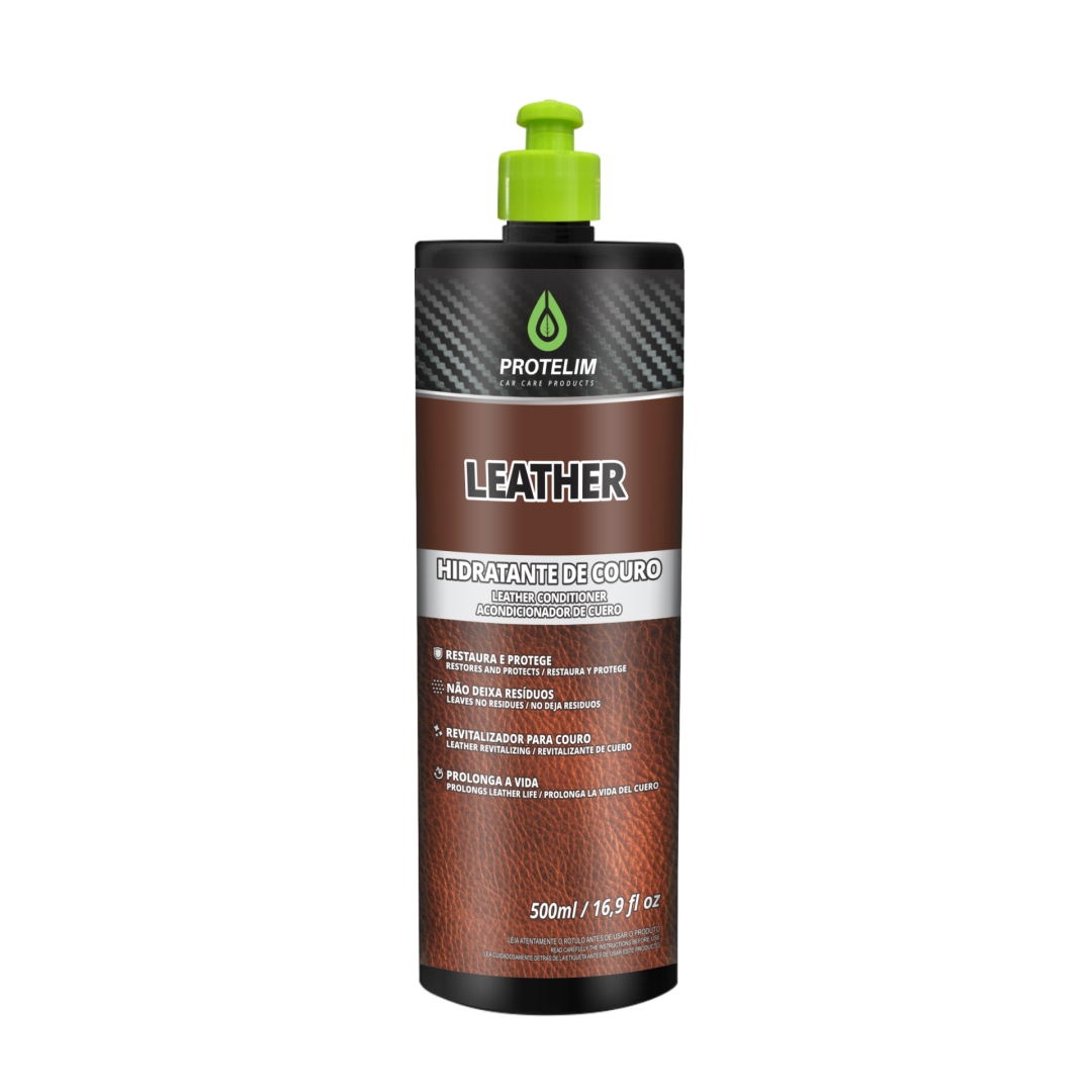 O couro é um material nobre que sofre diretamente com a ação do tempo, raios solares e variações de temperatura. O Leather da Protelim foi desenvolvido com uma fórmula avançada para devolver a umidade natural das fibras, prevenindo o ressecamento e o surgimento de rachaduras precoces. Sua principal característica é o acabamento de toque seco, que preserva o aspecto original do couro (fosco ou acetinado) sem deixar a superfície pegajosa ou excessivamente brilhante. Ideal para bancos automotivos, painéis revestidos e até artigos domésticos, ele cria uma barreira protetora que facilita a limpeza e mantém a maciez por muito mais tempo.