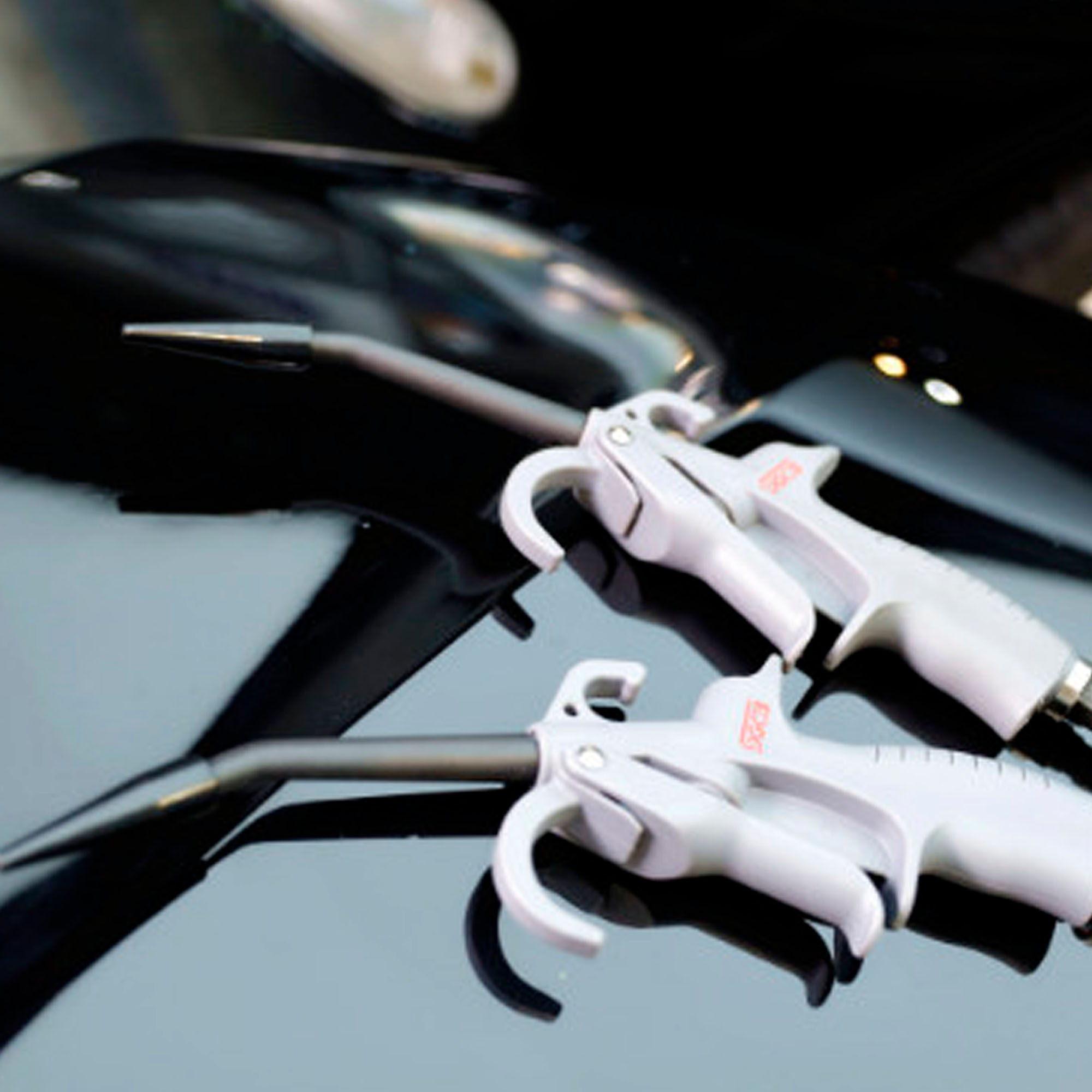 Esta pistola de ar comprimido é perfeita para alcançar aqueles locais onde a aspiração é difícil, garantindo uma limpeza minuciosa antes de qualquer tratamento: