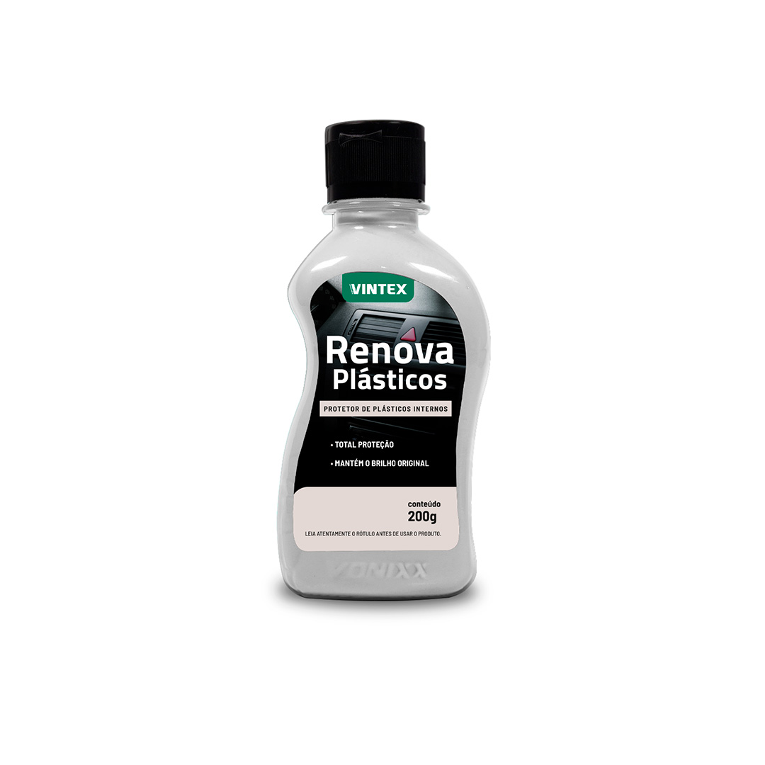 Toque seco e brilho original. O Renova Plástico Vintex 200g é o mecanismo tático para aniquilar o aspecto de plástico velho e ressecado. Garanta na Rafael Senzi!