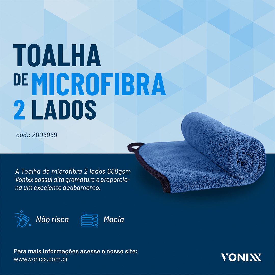 A Toalha de Microfibra 2 Lados 600gsm Vonixx possui alta gramatura e proporciona um excelente acabamento. Seu tecido remove camadas de ceras, selantes, aplicação de ceras spray e finalização do polimento sem riscar a pintura.